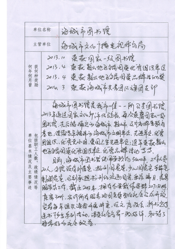 2025年4月海城市图书馆被海城市委宣传部评选为“优质阅读空间”