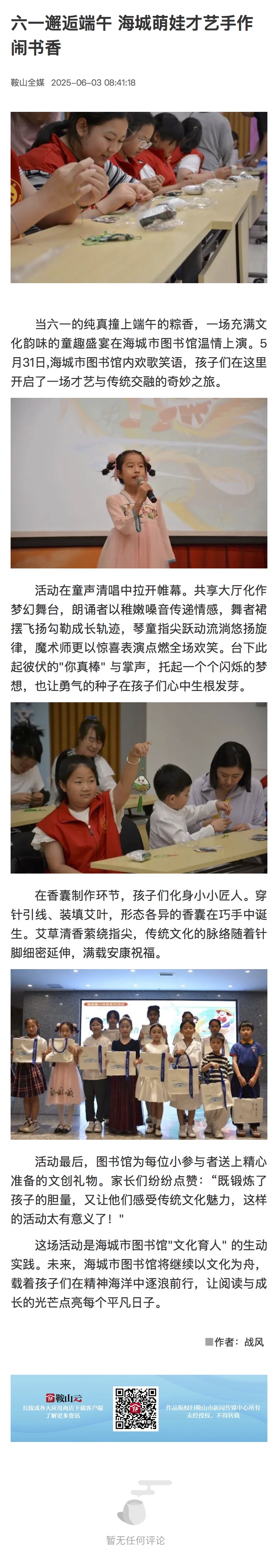 2025年6月3日鞍山全媒报道我馆端午节活动