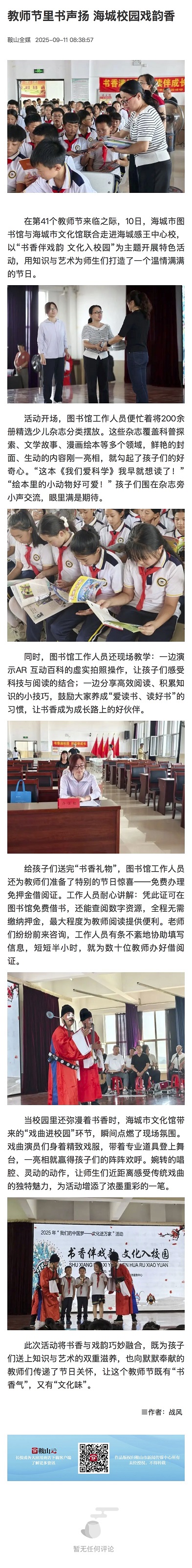2025年9月11日《鞍山全媒》报道我馆教师节活动