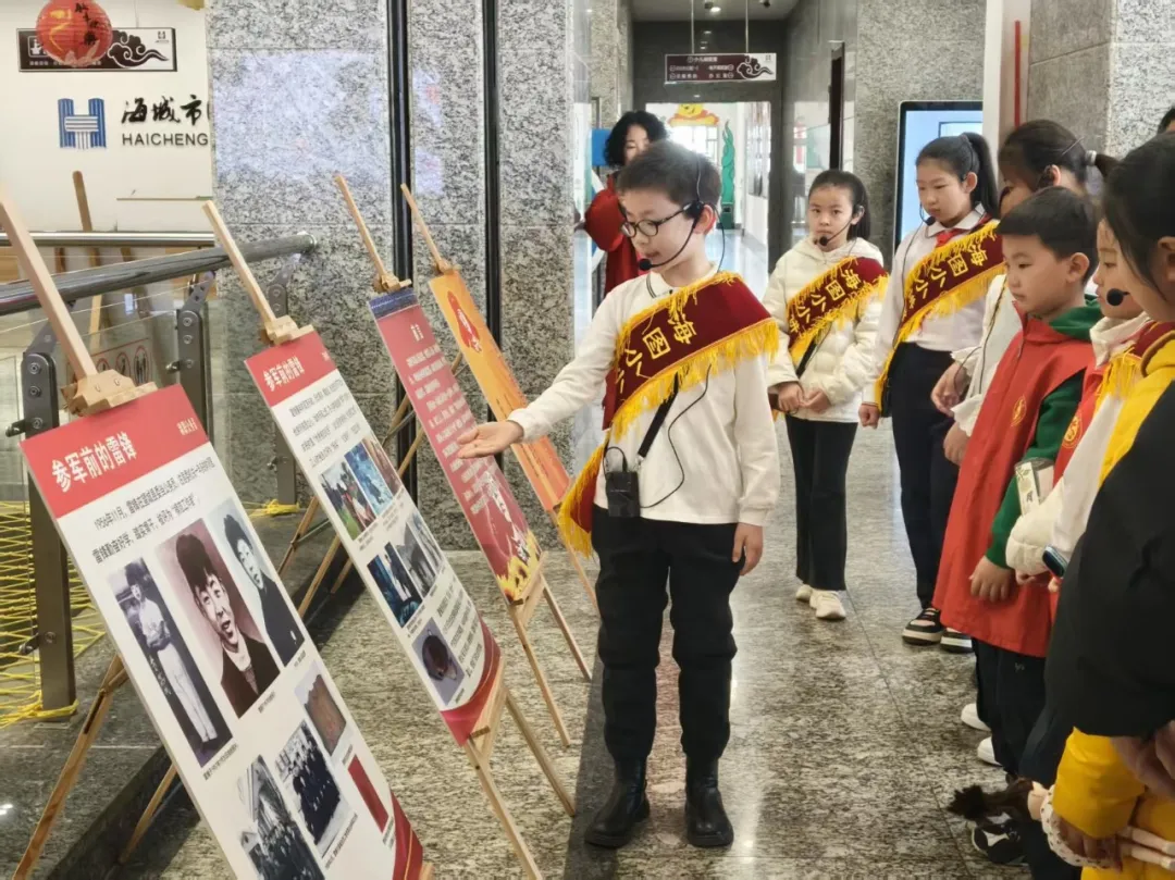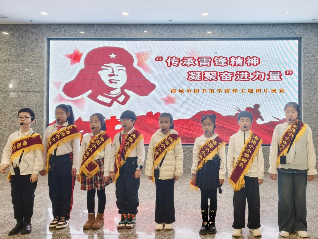 3月7日上午,海城市图书馆二楼共享大厅暖意融融。海图小志愿者们身着统一志愿标识,以饱满的热情投身学雷锋主题图片展志愿讲解服务中,用稚嫩而坚定的童声讲述雷锋故事,以实际行动传承榜样精神。
