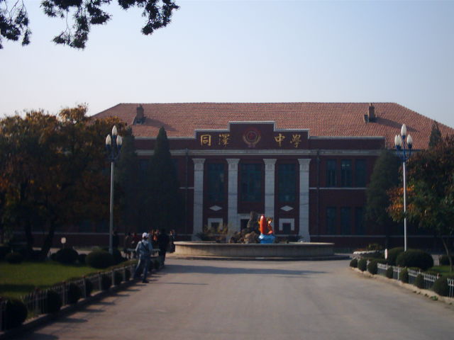 总体状况描述:同泽中学位于海城市玉皇山下,座南朝北,南临海城河,现有红 砖楼七栋,总建筑面积15186平方米,占地面积75375平方米,原有的建筑有办公 楼,建筑面积2892平方米,二栋宿舍楼建筑面积1855平方米,职业楼(教学楼) 建筑面积2320平方米。校园内的四幢二层主楼均为主字顶式现代建筑。砖木结 构,水泥瓦,水泥沙灰罩面。校内还有食堂、厨房、锅炉房、车库、警卫室等附 属建筑,其中一部分为解放后新增建。