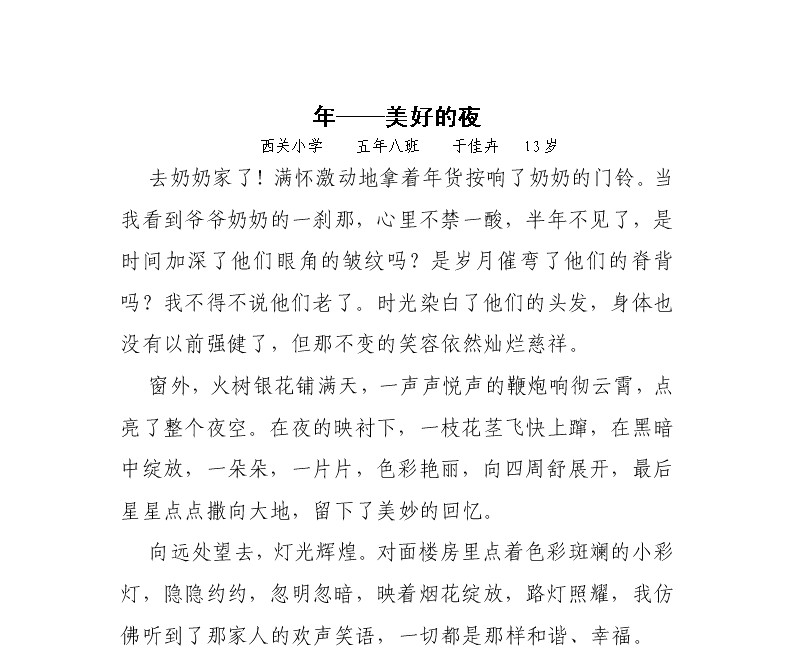 《年——美好的夜》 于佳卉(13岁) 西关小学 五(8)班