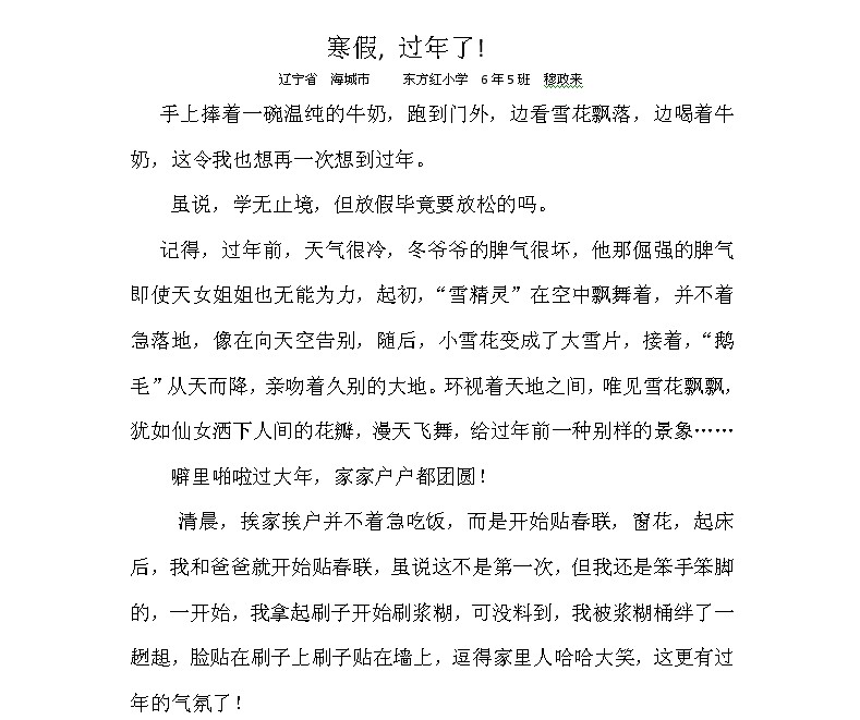 《寒假,过年了》穆政来 东方红小学 六(5)班