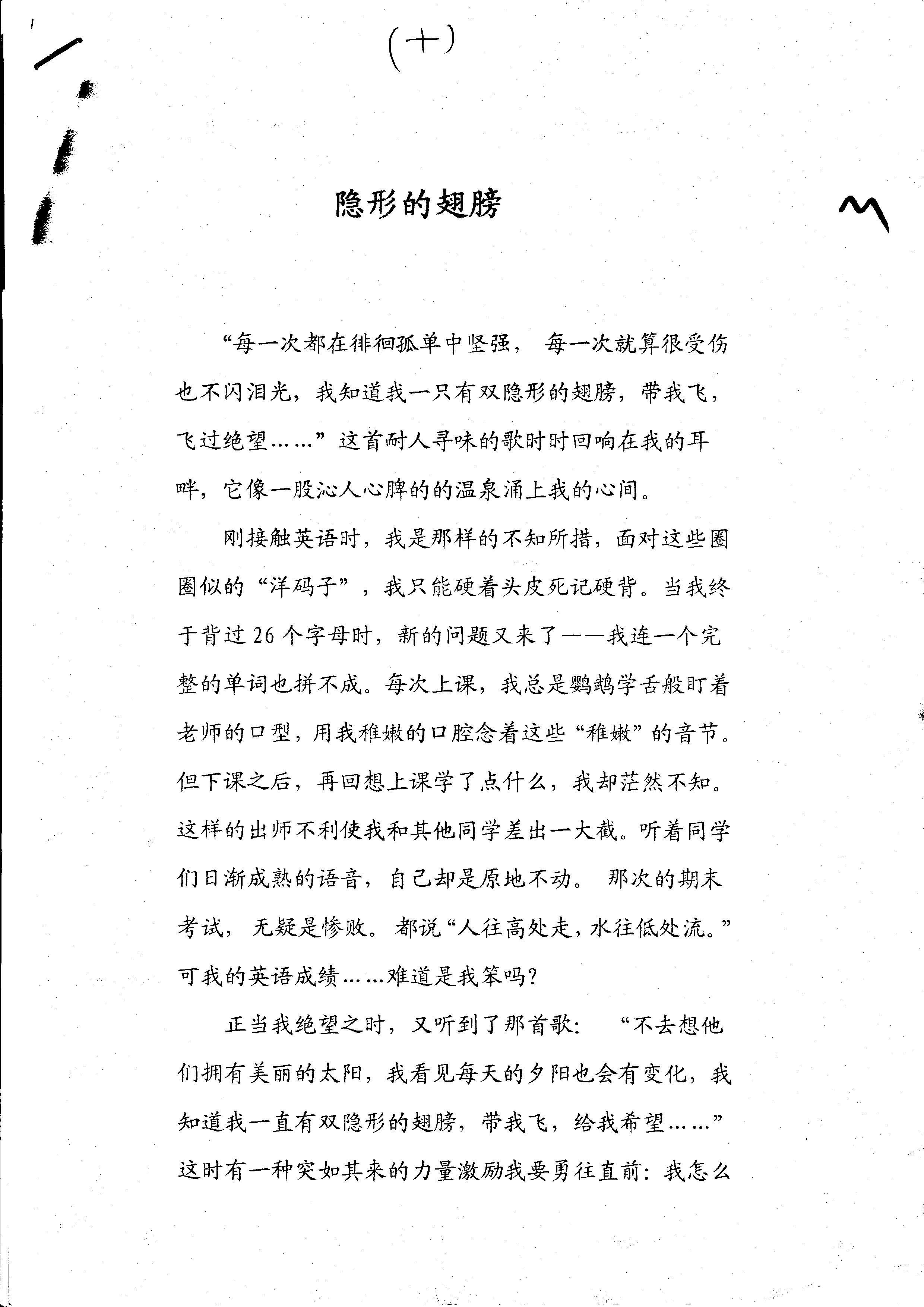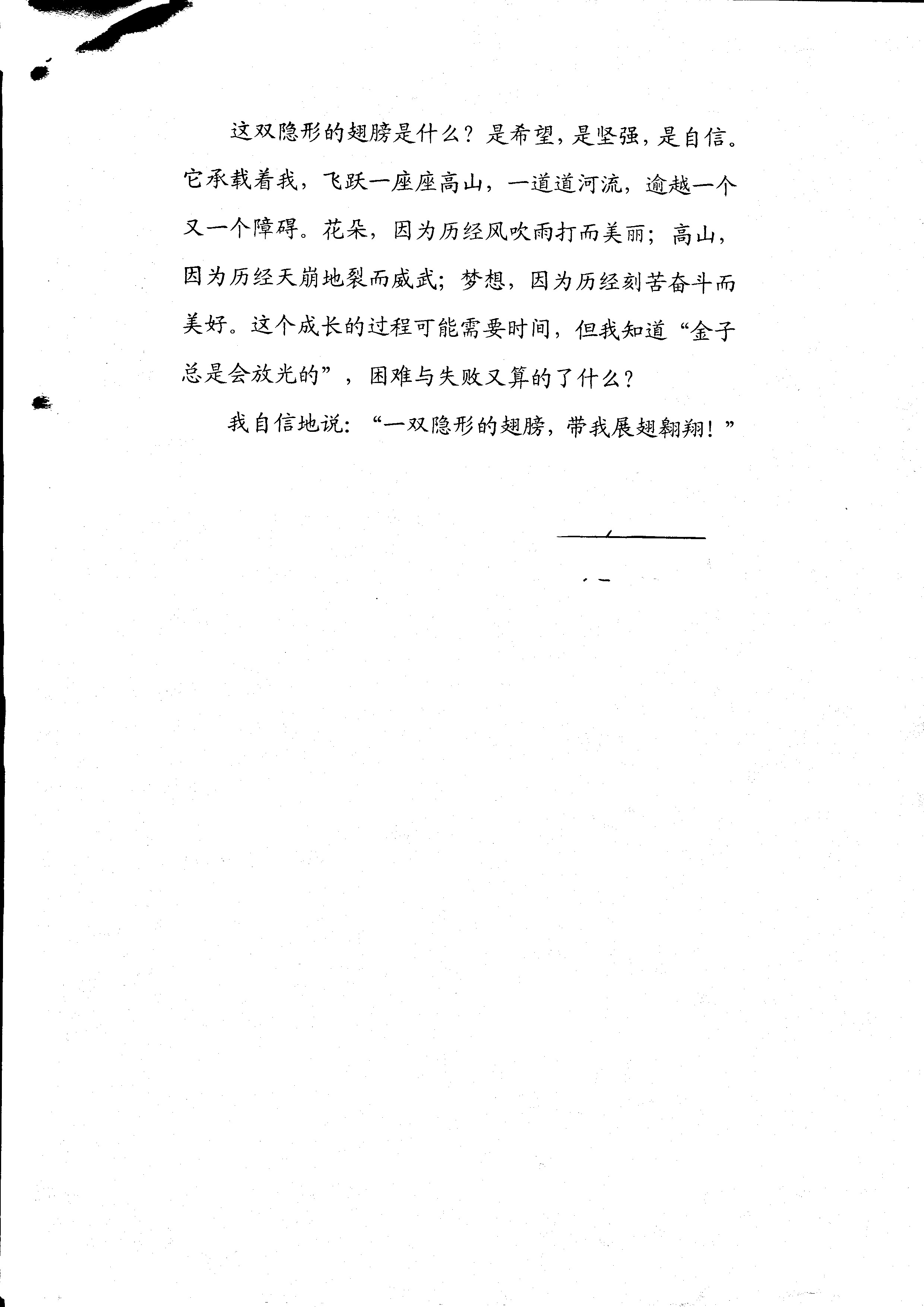 《隐形的翅膀》姜成一 海城二中 初二(6)班